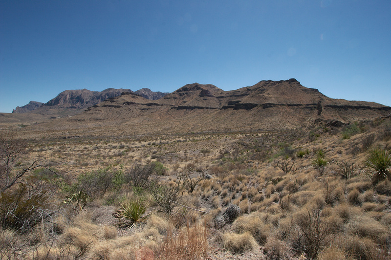 Returning back to the beginning of the trail, the view from across the road is also quite nice. Again, the Chisos Mountains (Southwest Rim). To the right are some of the magma columns scattered throughout the park.