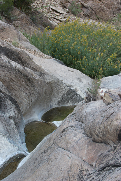 The stairs were actually carved by the WPA in the 1930s and nobody actually lived in the canyon because they would be swept away by the floods that carved the rocks. Some hikers ahead of us had actually seen the bear with her cub; that morning the half of our party in the other car had see them crossing the road. I heard something snort behind me as I was composing a picture later on, so I immediately pressed the shutter and started walking. It was probably a deer, but since I did not take the time to turn around, I will never know...