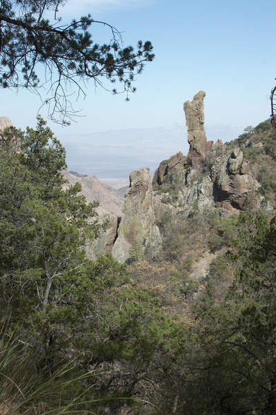 After passing a cabin and campsite, the trail begins climbing again to cross over the mountain into the Chisos Basin; right now we are on the eastern side of the mountain. There is a picturesque boot here, hence the name of the trail: Boot Canyon Trail.