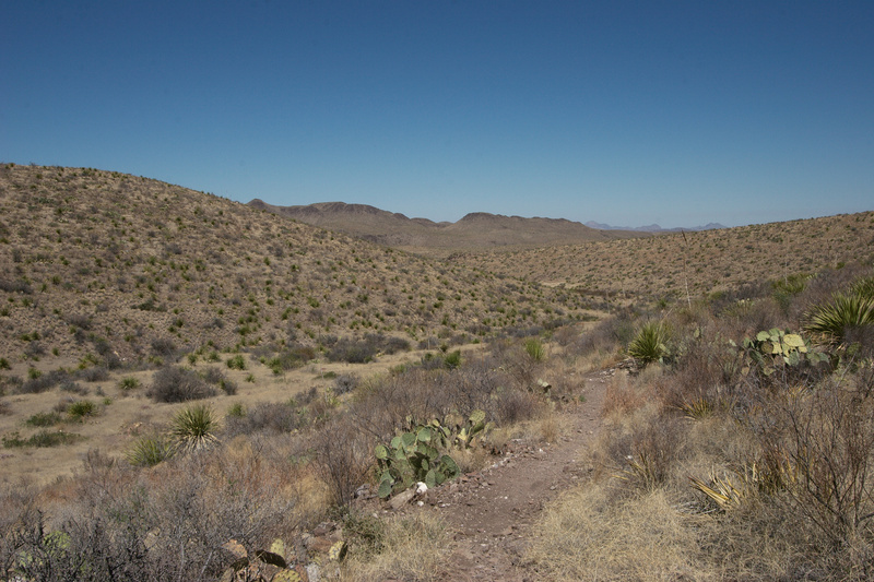 The Upper Burro Mesa trail starts off descending into this gentle sloping wash. There is something quietly fulfilling about this view. The camera does not quite capture it, but there is a certain lushness (for the desert), an dynamic landscape that is going somewhere, unhurried and peaceful.